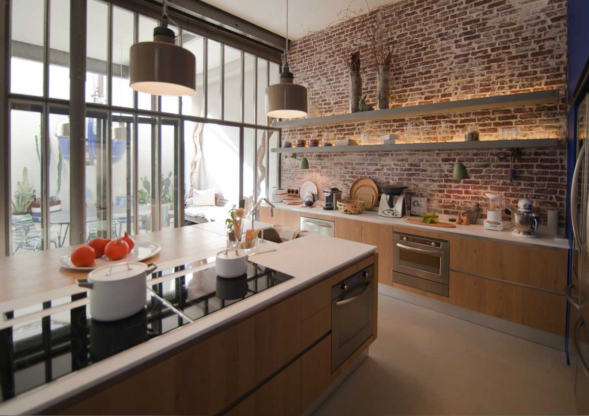 Alors vous allez adorer cette grande cuisine de style industriel.